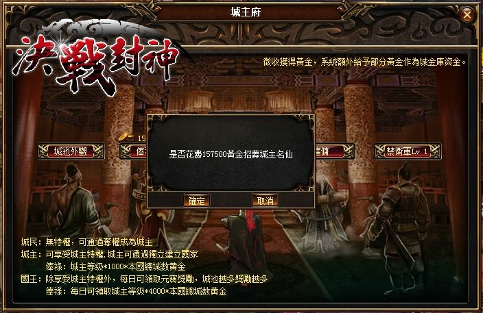 只要當上城主後可以雇用城池特有的名仙為自己而戰。為了爭奪優秀的特有名仙,佔領一塊好地盤可是很重要的呢,而且城池名仙的等級在雇用時的等級是跟自己主公一樣的,玩家完全不需要投資經驗值與練習。