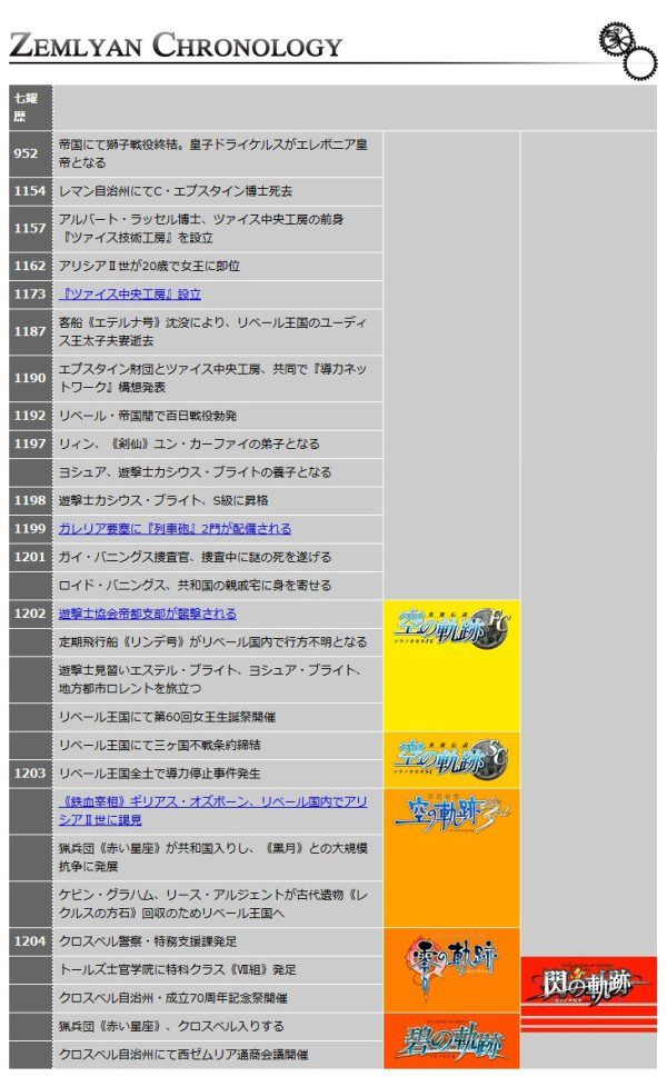 公開了以「塞姆利亞大陸」做為舞台的歷代軌跡作品