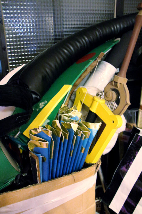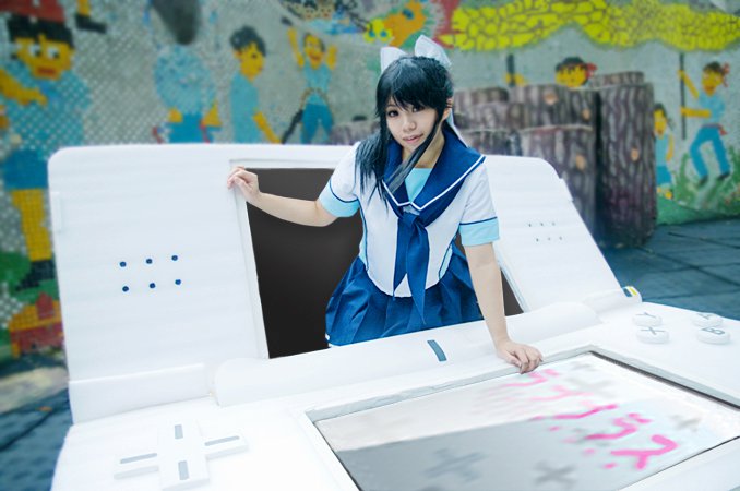 不過那次那個布景沒有留下來,因為無法帶走劍湖山的屏風呀!但都有存圖檔,所以想要再做的時候再印出來拼就 OK。像有一屆參加巴哈大賽的應援團,也是做出一個超大的 DS 道具,由於那個太大太佔位了,所以外拍完後就銷毀了。那個 DS 大到搬上捷運都被趕下車,超過能帶的道具大小了。其實決定不留的大道具,當下都會有一點點的不捨,想說做得這麼辛苦,但又想就近期來說用不到又太佔位,如果之後想要再做一台出來就好囉!