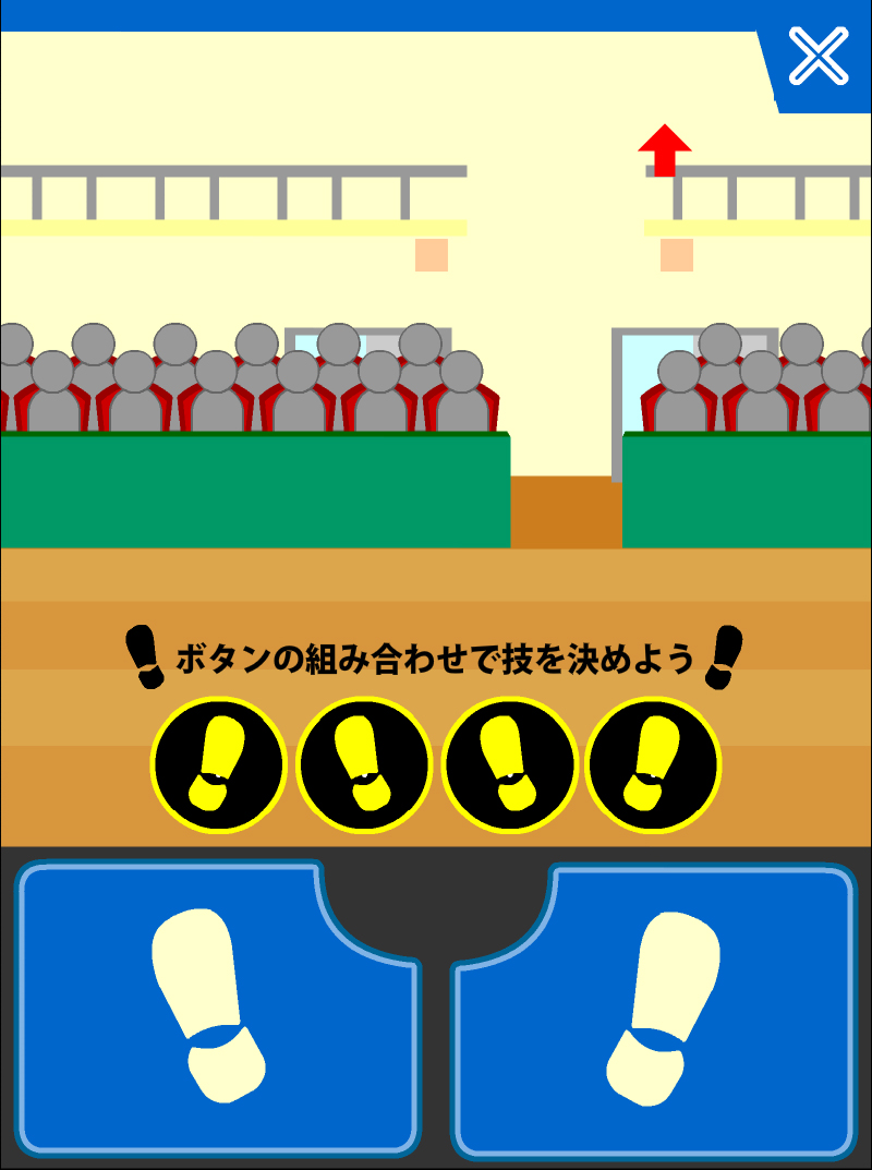 而在跳躍中,是使用「左腳」「右腳」的按鈕來以輸入的方式選擇著地技。雖然最多可以輸入 4 次,但就算停在 3 次也沒關係,但若都不輸入的話就會形成 MISS。