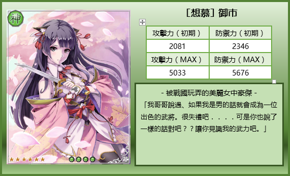 》是一款以日本戰國時代為舞台,並結合武將與妖怪等角色卡片手機遊戲。繼公開五大角色能力解析後,官方於今日釋出更多角色情報,供玩家參考。