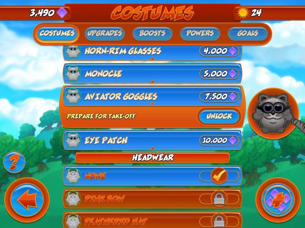 另外,遊戲關卡中還可以紫色水晶,玩家可藉由它們在商店中購買造型眼鏡、海到眼罩等特殊飾品,或著兌換增加移動距離等特殊道具提供玩家使用。