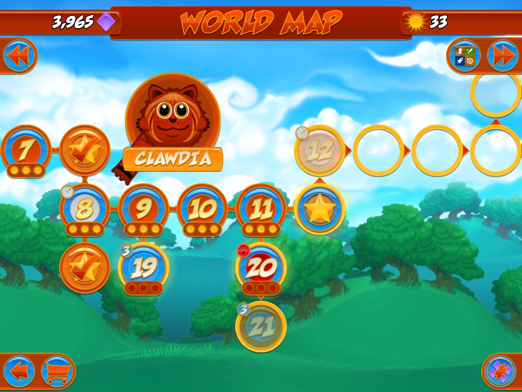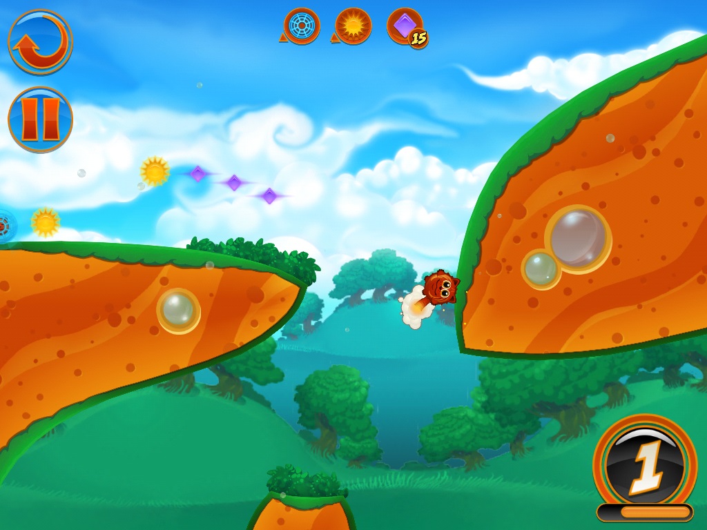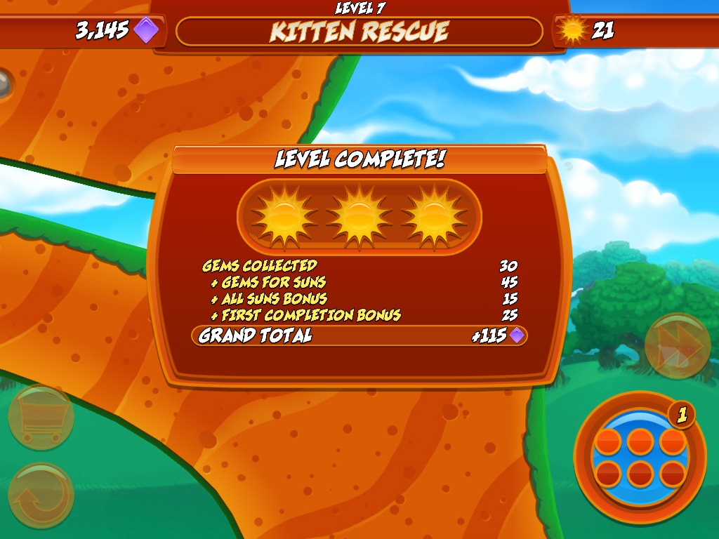 如同其他遊戲中的星星設計,場上也會散落著三個黃色小太陽,玩家也要將之收集完全才能累積積分。而像是增加貓咪附著於山壁上的黏著性等特殊功能也會隨著進度的推進而陸續提供玩家使用。