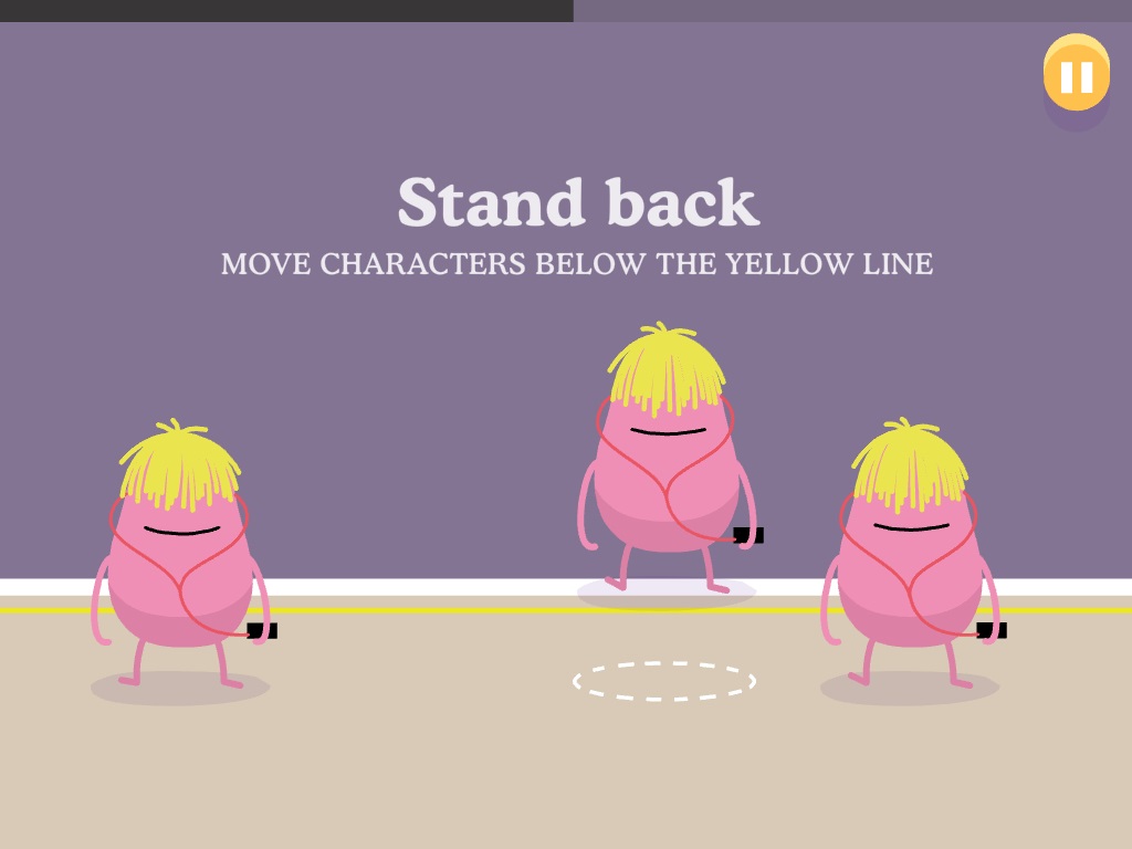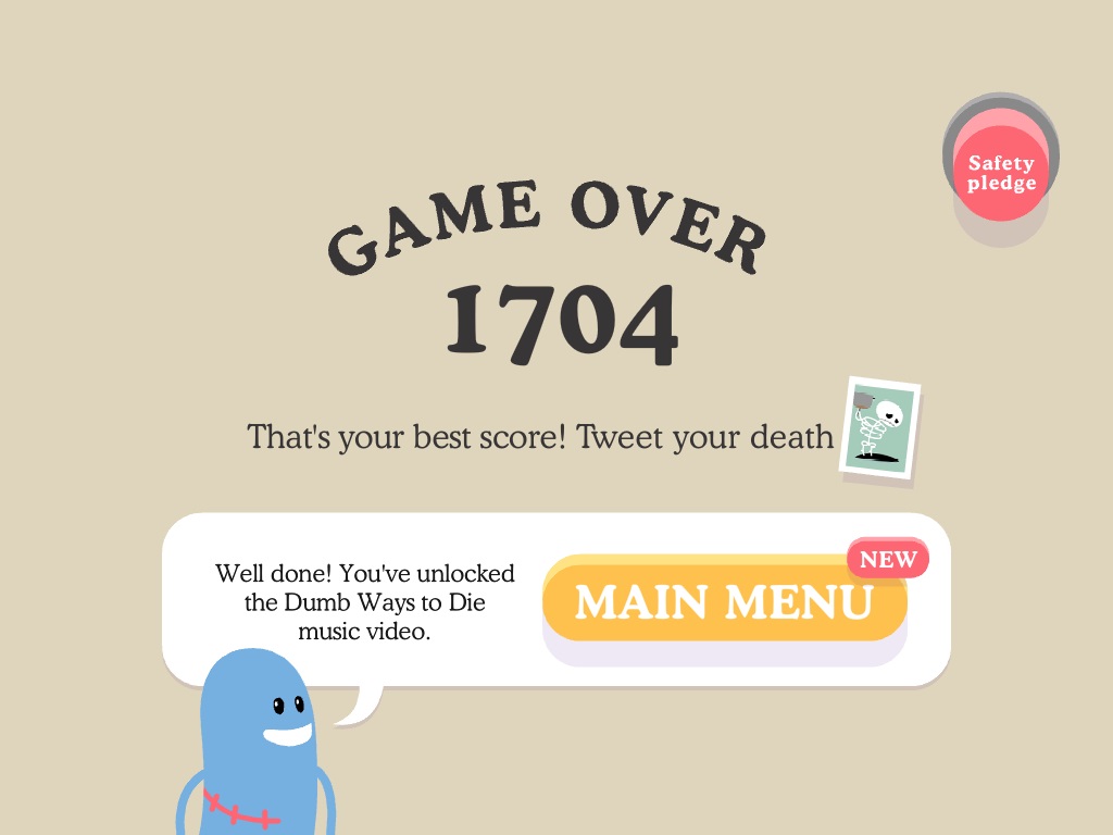 Dumb Ways to Die》風格沿用原有 MV 的動畫構圖,從原來二十一個不同的角色中選擇幾個特色死法改為反應遊戲並作串連。玩家在遊戲中要在三次的失誤機會中按照指示,在上方倒數的時限歸零前盡全力讓角色們逃離死劫。