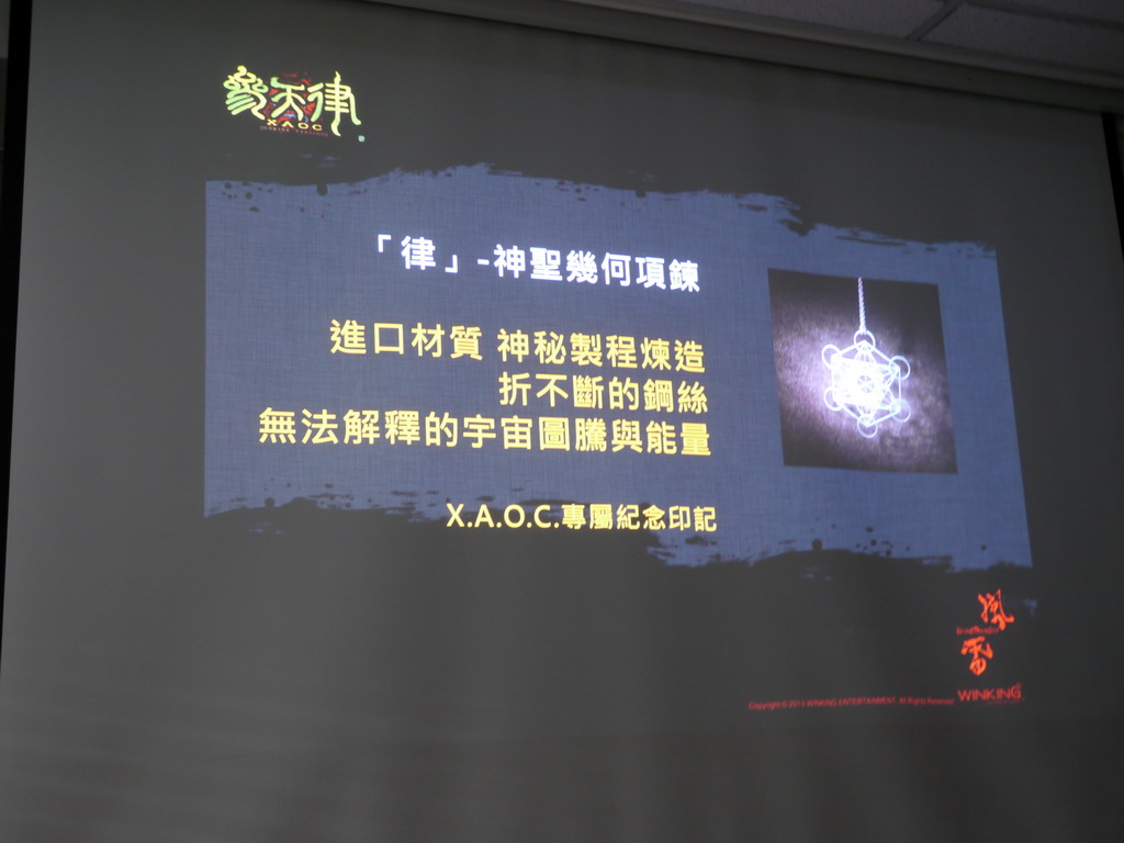 記者會現場除了展示典藏版將附贈的銀色神聖幾何項鍊「律」之外,唯晶營運總監劉大成也曝光同樣圖案、採用鍍金材質製造的項鍊。他表示,金色款式將會在上市後,透過特殊的遊戲活動來贈送給玩家。