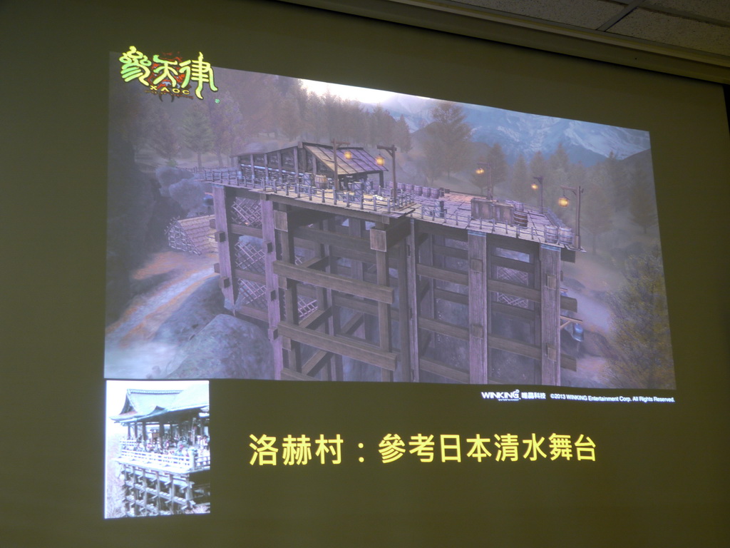 至於像參考日本清水舞台的洛赫村做起來也相當困難。研發團隊表示,由於清水舞台是蓋在大山坡上,他們也在山坡上搭造場景,但這要做成可遊玩區域,所以要想辦法讓玩家通行無阻,要讓玩家真正可以在上面跑來跑去,因此付出了很多心力。其實,像很多場景例如大垃圾場、三坊七巷等都不只是只有平面的道路可以探索,玩家甚至可以跳上屋頂跑來跑去。