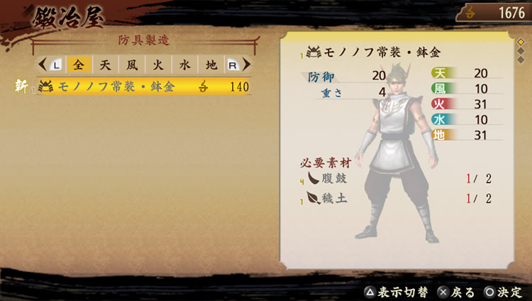 為了製作這些裝備品,必須要有在地圖上得到的素材,以及打倒 “鬼” 時所獲得的素材來製作。