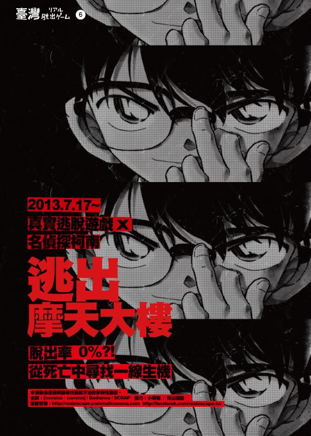 讓參加者親自體驗解謎的「真實逃脫遊戲」與人氣作品《名偵探柯南》合作推出的主題遊戲「逃出摩天大樓」,將自 7 月 17 日起至 9 月份陸續於台北、台中以及高雄登場。