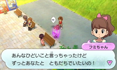 此外,做為的冒險舞台「櫻花新鎮」各地,以及成為壞妖怪棲息處的「學校」和「廢棄醫院」截圖也引人注目。順帶一提詳細情況尚不明確,但櫻花新鎮似乎有時會氛圍大變,捲入被鬼追逐的「鬼時間」惡夢。