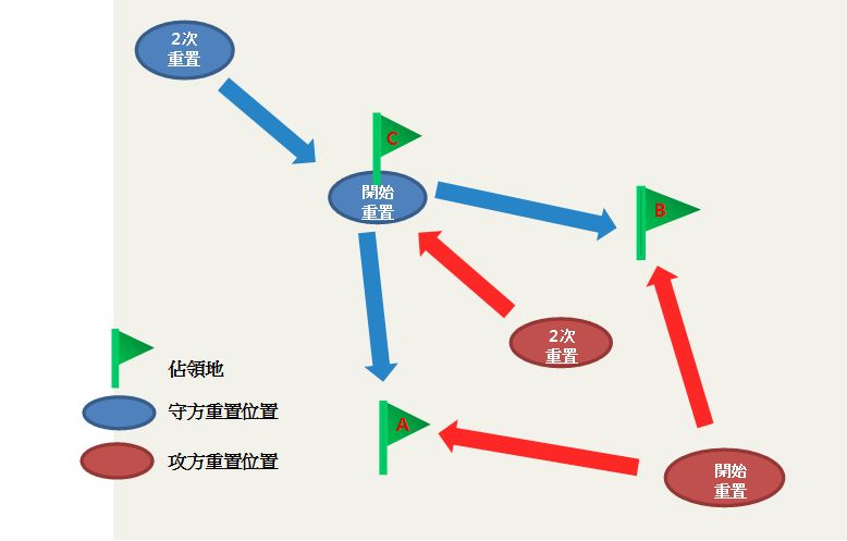 特別要說明的是,防守方若讓攻方花越多時間才攻下據點,待到成為攻擊方時,就可以擁有較多的時間來進攻,因此不論是攻守都要進全力擊倒對方。
