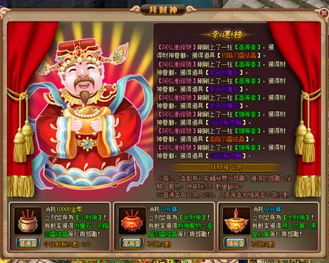 即日起 -6/26(三) 晚上 23:59,全服玩家皆可前往天空之城 NPC【財神】處上香,虔誠的以普通香、高等香或是頭等香祈求財神,除了可變身為財神,擁有意想不到的戰鬥力之外,更有機會獲得限量財神寵物,上古之巔頂級翅膀【明王之翼】、【黑皇之翼】等各種超值豪華獎勵!