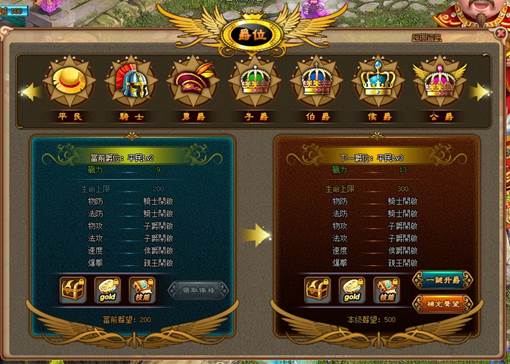 可透過晉升的爵位俸祿,變成好野人!