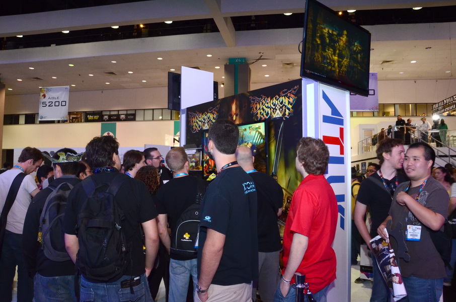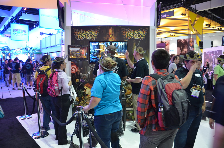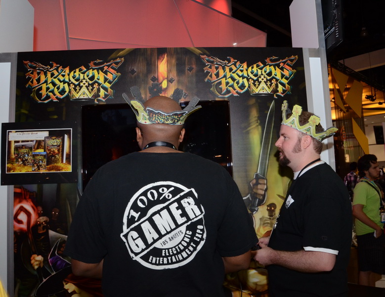魔龍寶冠(Dragon's Crown)》本次在 E3 展中的 ATLUS 攤位展出,並提供多台機台供玩家試玩。值得注意的是,遊戲畫師神谷盛治親自到現場舉辦了簽名活動,但礙於主辦單位規定,無法在現場拍攝有畫師