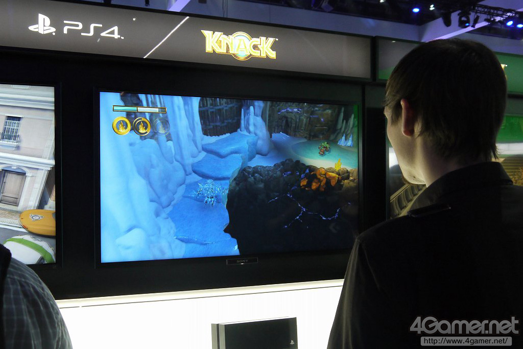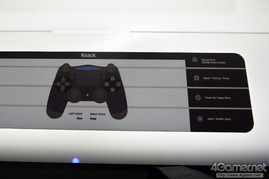 …抱著這樣的念頭開始遊玩之後,沒想到完全跟預想的不同。實際上《Knack》是使用左右類比搖桿跟[○/X/□/△]鈕的簡單操作來順暢進行的動作遊戲,就連使用其他按鈕的場面也沒有。更不用說觸碰面板了。雖說如此,但是一直按其他操作上用不到的按鈕時,可以看到許多東西。