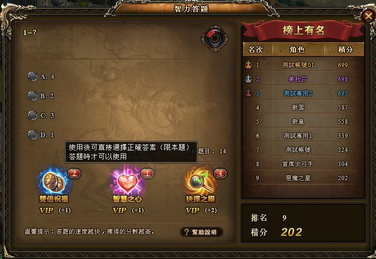 一位合格的勇士,除需具備不凡實力、高昂戰意,更不可缺少聰慧的頭腦。在『神之呼喚』開啟的『智力競答』活動中,智慧將直接決定玩家的收益。