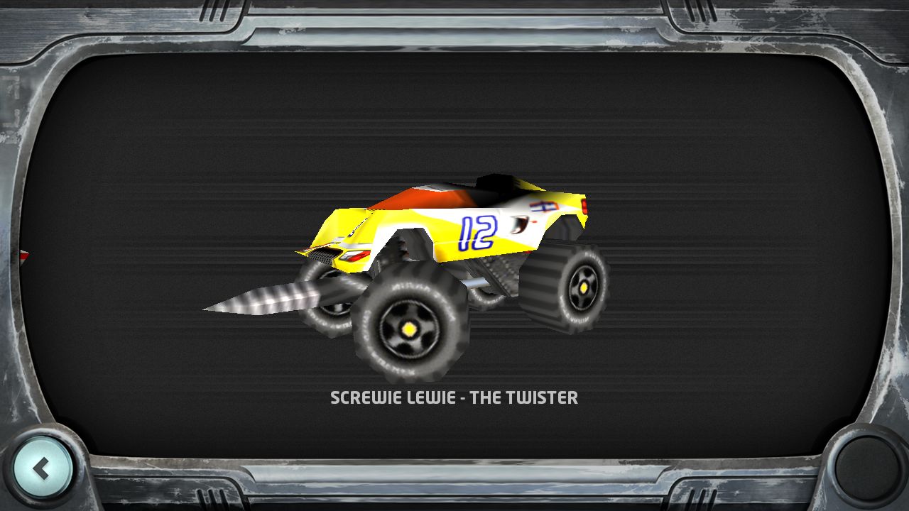 遊戲的選單和它的風格一樣很直接,在主畫面中選好搭乘的車輛、場地後,點選右下角的箭頭便可以開始遊戲。