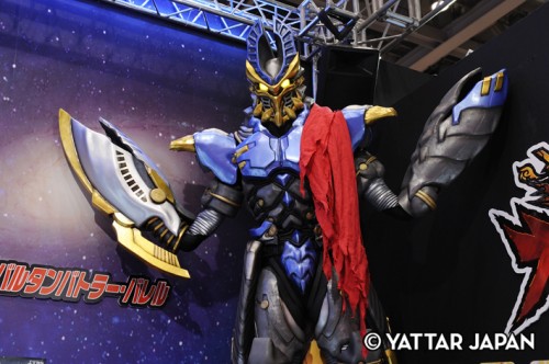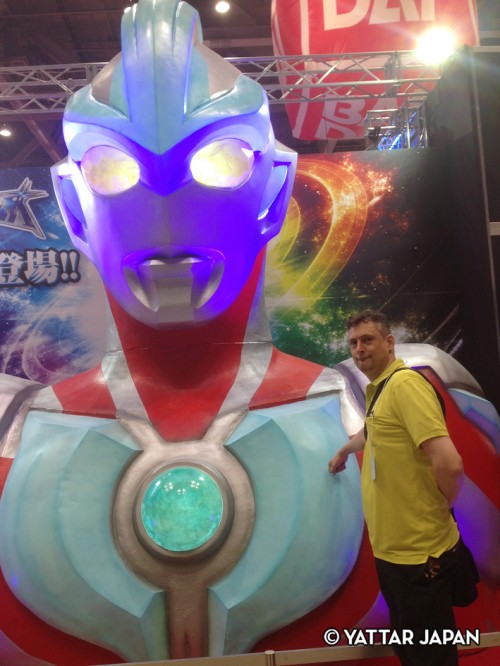 最新超人力霸王「Ginga」的發光巨大塑像是 BANDAI 攤位的門面。