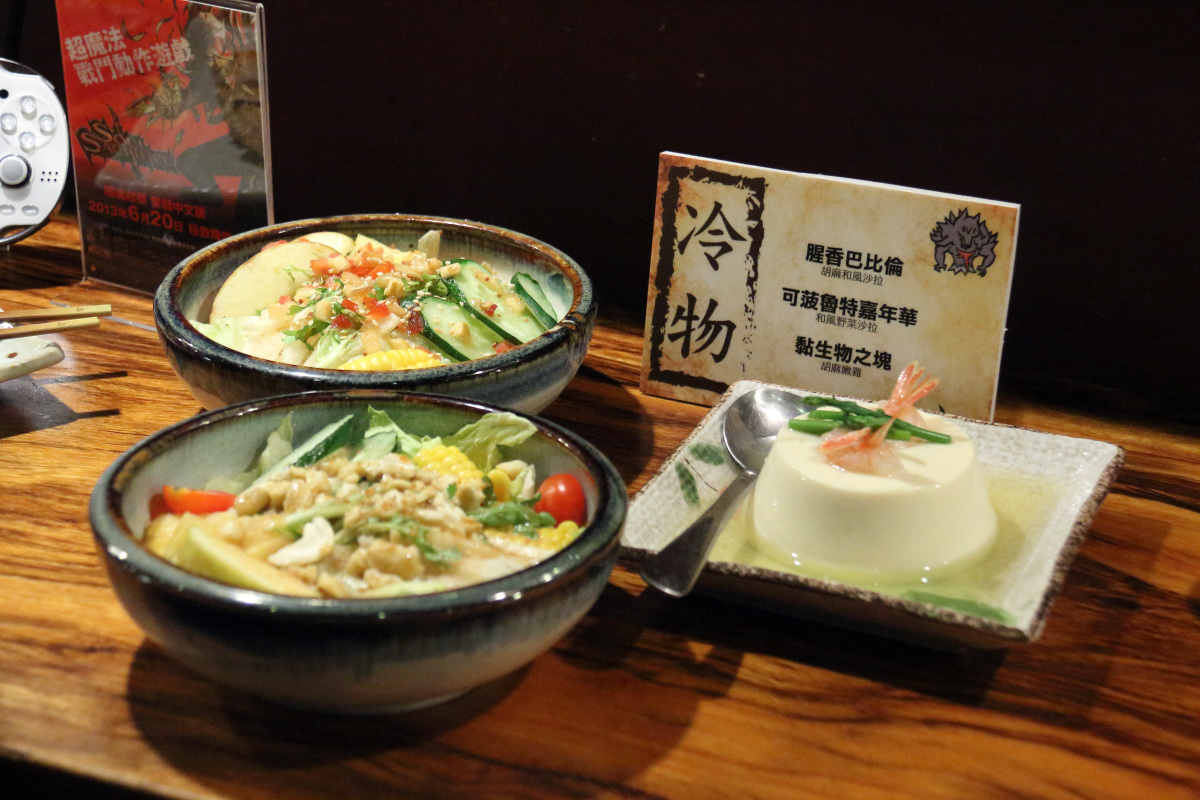 闇魂獻祭 》的黑暗奇幻風格最不適合的就是跟食物搭配(編按:因為有很多異形怪物以及血腥噁心的表現),在日本大家絕對不會想到要讓這款遊戲去跟餐飲業合作宣傳,不過在台灣卻成功打造出這樣一個主題餐廳,讓他覺得非常稀奇(笑)。而精心設計的菜單也相當有趣,其中衝擊性最大的應該是臭豆腐料理吧(編按:大多數日本人難以接受臭豆腐的氣味)!