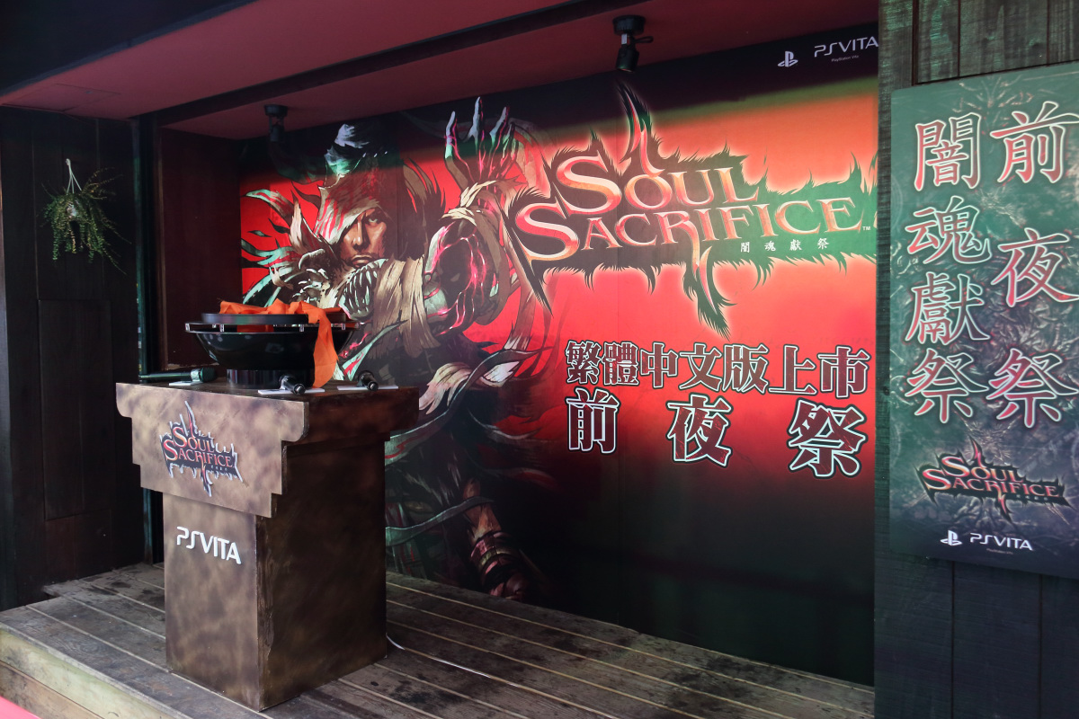 闇魂獻祭 (Soul Sacrifice)》繁中版 20 日在台上市,特別與串燒居酒屋「吳留手」合作打造「闇魂獻祭 期間限定主題餐廳」,於 19 日晚間盛大舉辦前夜祭活動,邀請擔任本作概念發想的知名遊戲創作者稻船敬二擔任主題餐廳開幕嘉賓,與 VIP 玩家一起展開熱烈的共鬥盛會。