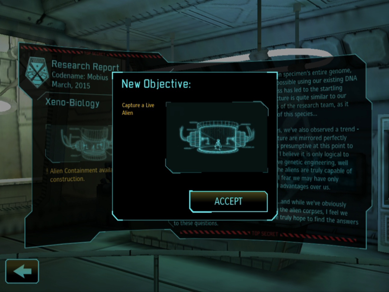 而結束戰鬥回到基地時,則可以研究戰鬥中取得的外星人物品或屍體,藉此獲得更高的外星科技,研發出更強力的武器裝備。只要不斷的研發,在遊戲後期還能夠使用機器人、飛行裝甲、隱形科技、甚至是開發有超能潛力的隊員學習更強大的心靈技能等等。
