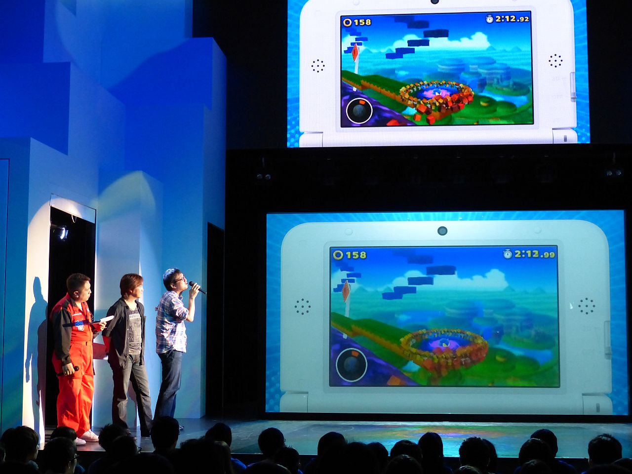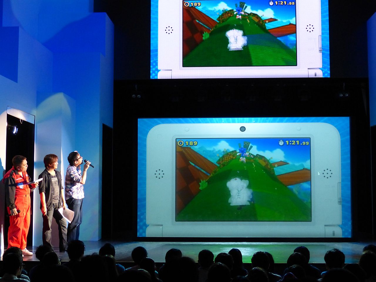 平林特別強調 3DS 版是音速小子首次在掌機上以 3D 畫面呈現的作品。另外還介紹了利用新動作 “翻筋斗(サマーソルト)” 所附帶的衝擊波將敵人擊倒的場面