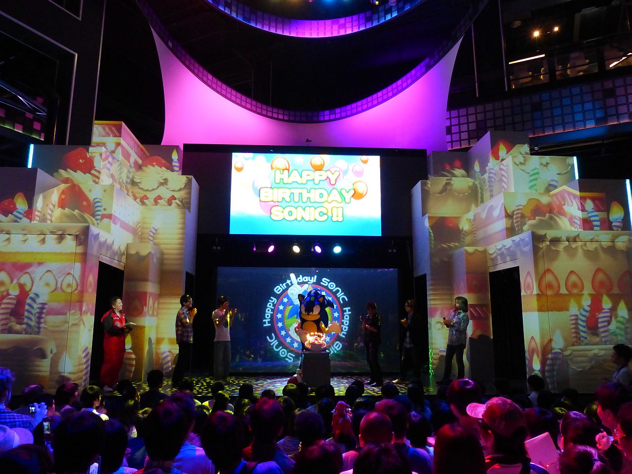 索尼克在最後也登上舞台,和全體來賓一同慶祝生日