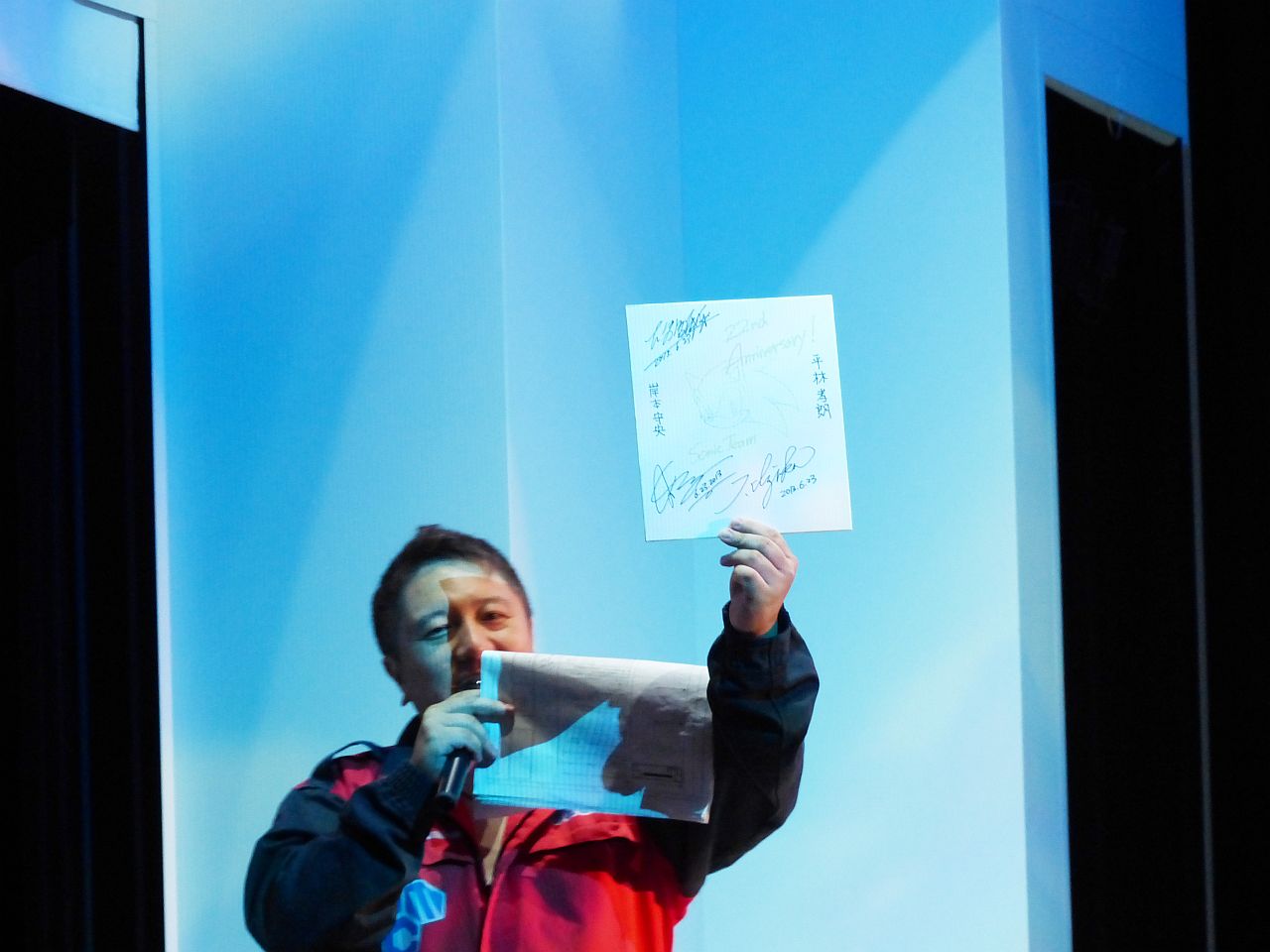 製作團隊也準備了簽名板等豪華精品在現場舉行抽獎活動,開發團隊的簽名板上還有音速小子設計者上川佑司所繪製的插圖