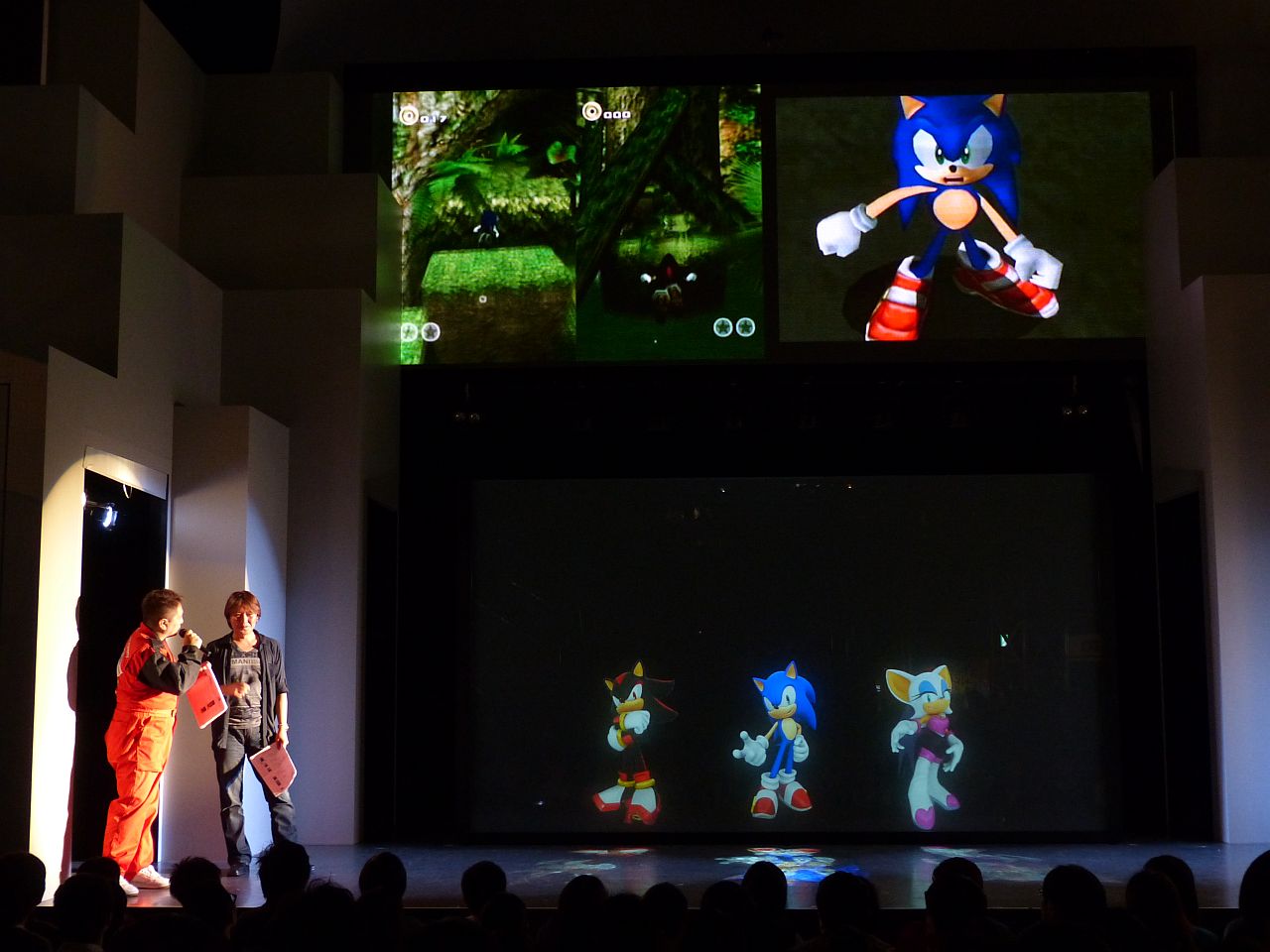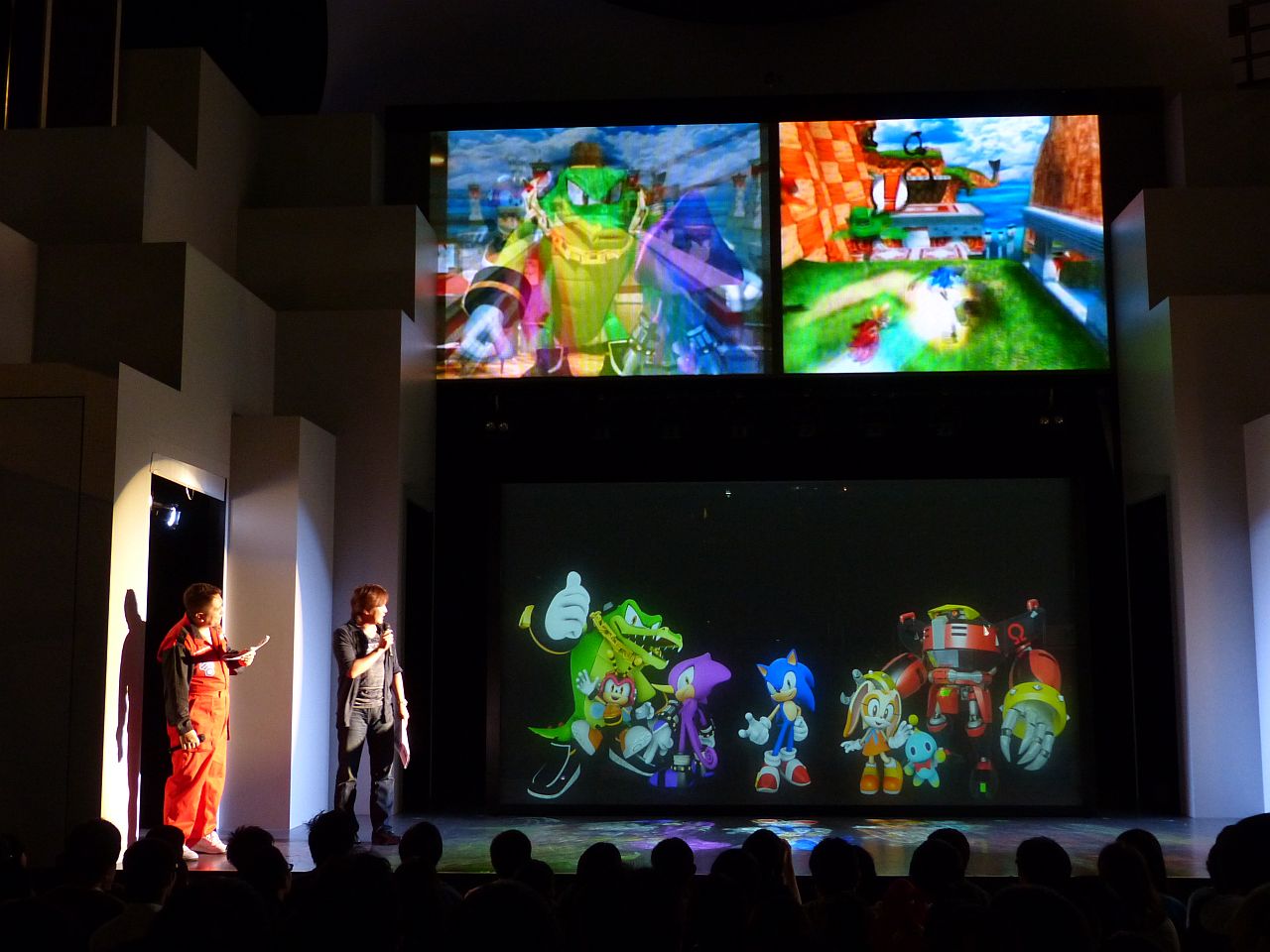 《音速小子大冒險》中的「伽瑪」、「畢格」還有之後做為吉祥物博得人氣的「巧兒」陸續登場、《音速小子大冒險 2》中的「夏多」在畫面上現身,惹來現場女性粉絲一陣尖叫