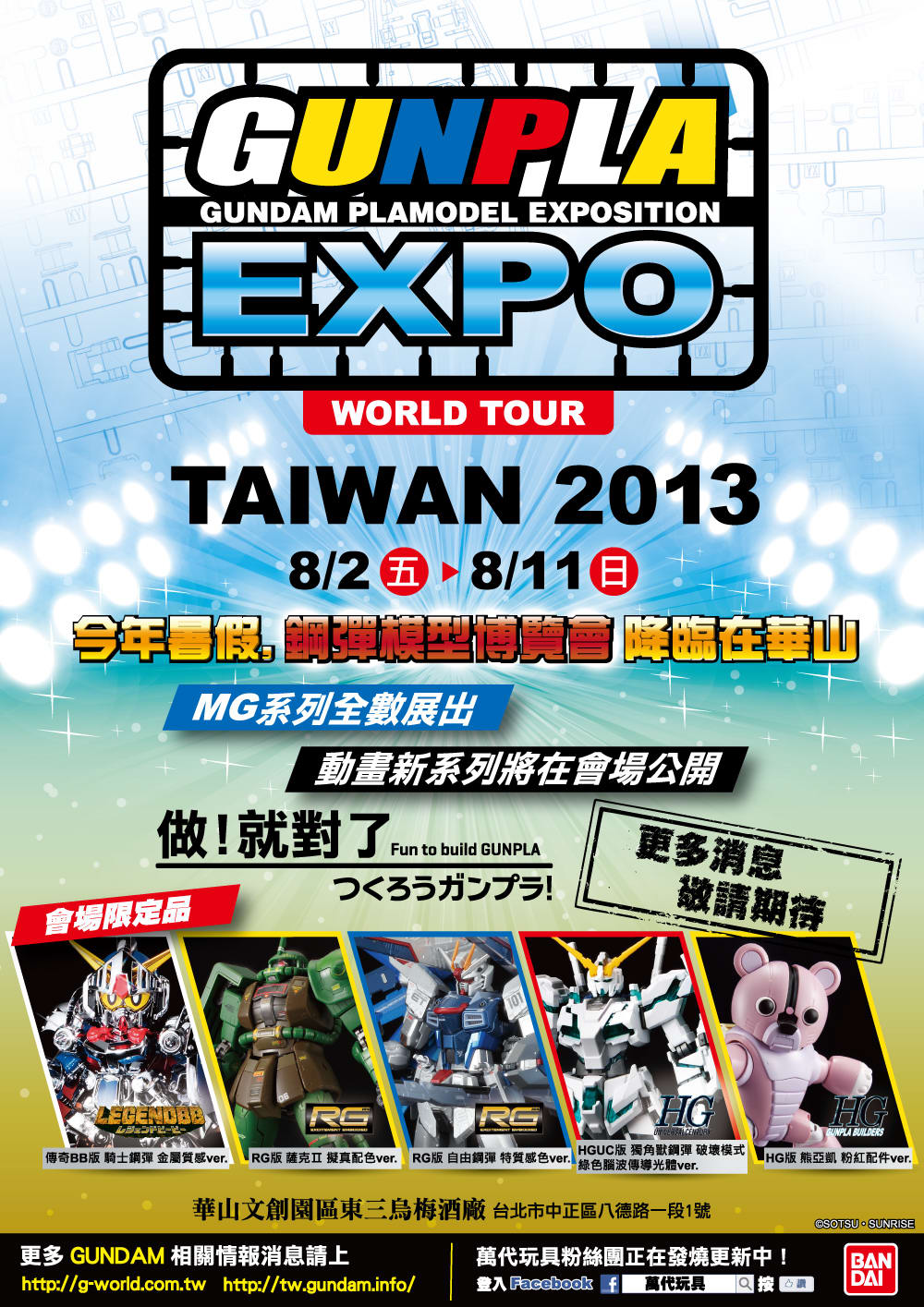 另外,於 8 月 2 日至 8 月 11 日由萬代玩具舉辦的「GUNPLA EXPO」也會出展《鋼彈破壞者》PS3遊戲機台,並且也會有遊戲的抽獎活動,後續相關消息請至萬代玩具官方粉絲團專頁查詢:https://www.facebook.com/Bandai.Taiwan