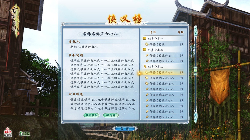 每完成一個俠義榜任務,玩家都會獲得任務獎勵的相應經驗分數。隨著得分的增加,玩家在俠義榜上的排名將隨之改變。當然,完成俠義榜任務也可獲得相關成就。