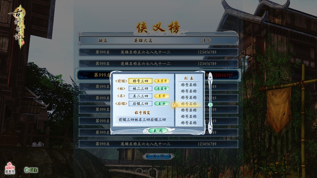《古劍奇譚 2》中的俠義榜新增名稱編輯功能,玩家可以自行編輯自己在俠義榜排行上顯示的名字。