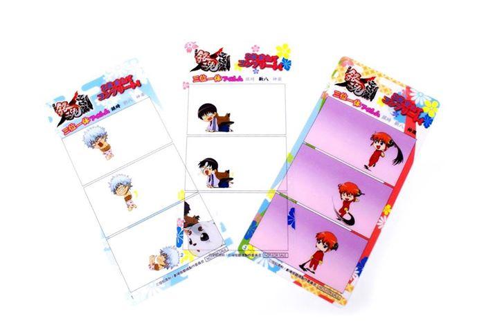 在《銀魂》電影上映期間則會有特別入場禮「三合一底片」,顧名思義就是要將三張底片重疊在一起才會成為一張完整的畫面,共分為阿銀、新八、神樂的萬事屋版本,近藤、土方、沖田的真選組版本及阿銀、桂辰馬、高杉的攘夷版本,全系列有 9 張,將會隨週更替版本,7 月 27 日後則隨機贈送,而入場禮除了三合一底片外,還有先前公布的「漫畫零卷筆記本」。