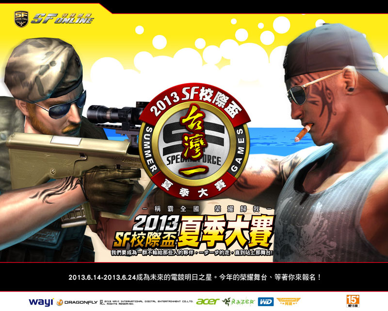 華義 SPIDER《SF Online》戰隊,日前披上中華隊戰袍前往韓國仁川參加亞洲室運,勇奪銀牌載譽歸國!各位愛國的 SF 戰士們,是否也想和職業電競選手一樣有機會為國爭光呢?今夏最火熱的賽事「2013 SF 校際盃夏季大賽」,明 (5) 日正式開戰!這是一個只給學生選手表現發揮的絕佳舞台;本屆賽事官方廣邀各路廠商聯手打造,包括:ACER、Razer、WD、ARNOR、聯成電腦等五大知名品牌,提供高規格賽事及豐富獎項,與玩家一同寫下暑期最難忘的比賽回憶。