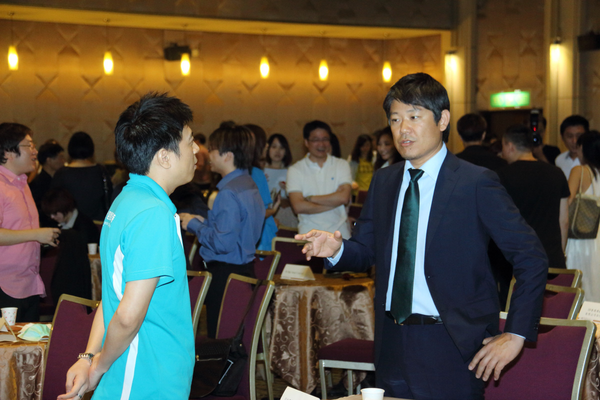 越知雄一與台灣卡普空團隊擊掌歡呼