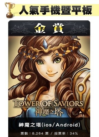 由香港遊戲開發商 Mad Head Limited 所製作,長期高踞 iOS、Android 營收排名第一位,巴哈姆特人氣排名 No.1 的港台人氣手機遊戲《神魔之塔》,在2013 「巴哈姆特遊戲大賞」中得到了人氣手機暨平板遊戲的金獎!廣受玩家好評的《神魔之塔》,得票率更佔投票總數的34%!