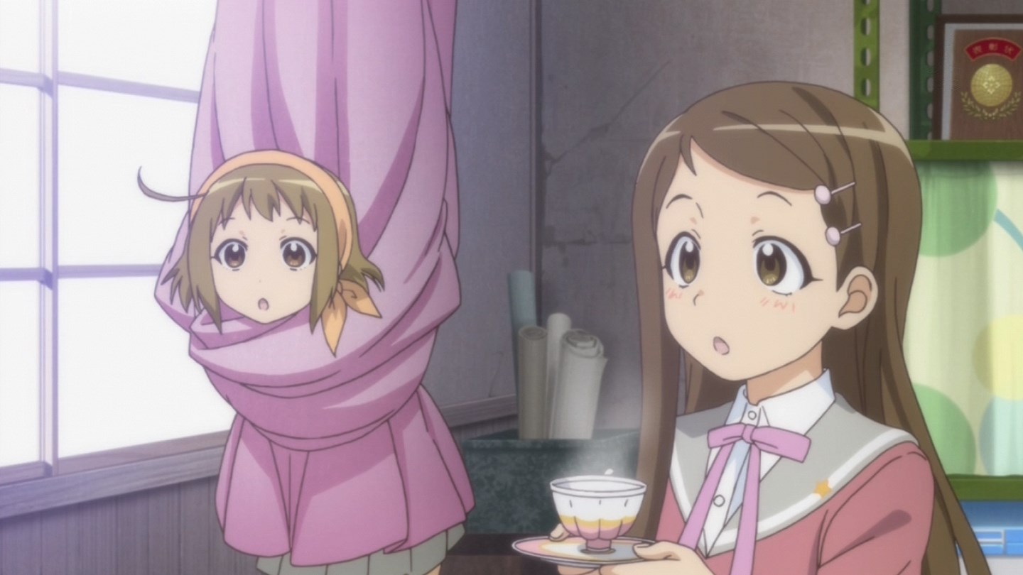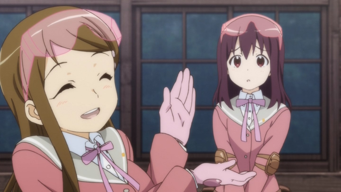 第一話的故事,在前半段的日常生活光景中,人物的表情與動作都相當有趣,愛妄想的大和由良,從幻想著學園生活、與學姐的感情生活(?)、看電影時投入到不自覺的cosplay等等。而男孩子氣的卡莉拉,講話方式以及帥氣的動作也頗引人注目。還有治癒系的霧島蓮都,元氣娘日向八千代等等,也都將各自的特色展現了出來。