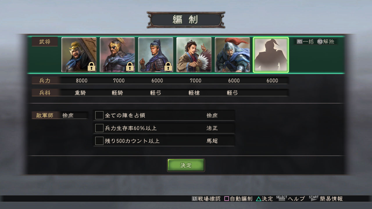 在編制畫面中,要決定要讓哪些武將出陣。