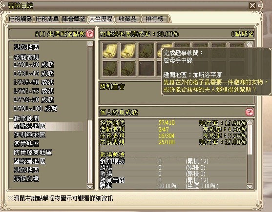 「瑟斐爾趣聞錄」的小編們將奇聞軼事的線索擺放在「冒險日誌」的「人生歷程」頁面中提供精靈使者瀏覽。除了趣聞的大略地點以外,還簡單的描述了一下情報內容,相信對於精靈使者的探訪有一定的幫助!請仔細閱讀提示,實地走訪找出趣聞的相關人事物吧!