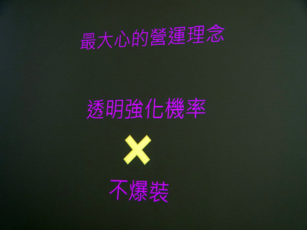 黎明之光》的營運理念在於透明強化機率與不爆裝。《