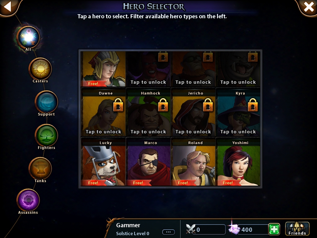 一開始玩家能使用的英雄有限,但可透過關卡賞金或額外付費解鎖新人物。每名角色可購買不同的外觀道具,官方還提供每日免費的人物讓玩家試用,算是頗為親切。在戰鬥結束之後,玩家也可試著邀請對手或是隊友成為好友,以後開闢戰場時就能直接邀請對方參戰。