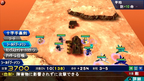 在 MAP 上與敵人之間有障礙物的時候,雖然用一般的攻擊無法打到敵人,但如果小隊擁有可以進行「曲射攻擊」這種以弧線攻擊的武器時,就可以攻擊被障礙物阻擋的敵人。此時,如果敵人沒有可以進行「曲射攻擊」的武器,我方就不會受到反擊。