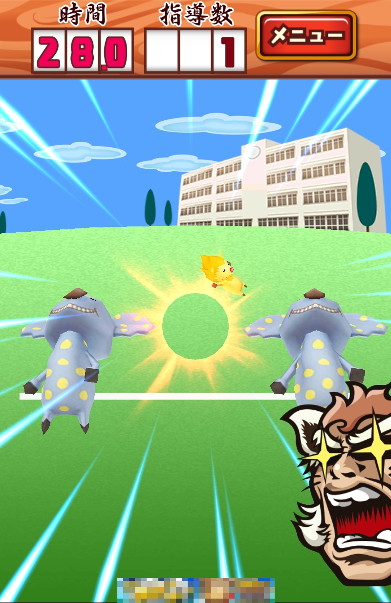 遊戲內容單純明快。玩家要扮演對規律很嚴格的鬼教官,要從畫面後的校舍跑過來的3人(隻?)動物中,觸碰與「別人不同」的動物。