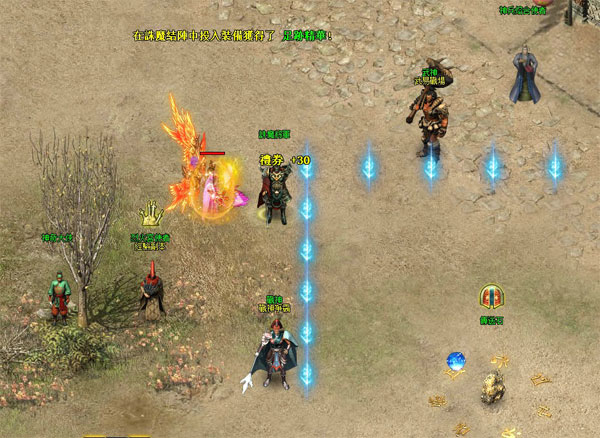 烈火戰神》中,多餘的裝備最為划算的處理方式當然是回收給土城的誅魔將軍,將軍除了會饋贈一定的經驗與金幣外,還會告訴玩家,積攢足夠的結陣數將可擁有挑戰裝備 BOSS,奪取極品裝備的機會。《
