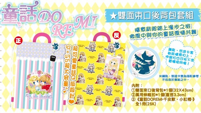 ★《童話DOREMI》雙面束口後背包套組