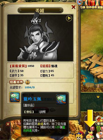 《桃園英雄傳》中,招募武將需達成一些特殊條件,玩家除了要完成相對的主線任務、獲得一定的聲望外,還需要收集招募武將的心頭之物才能成功招募武將。