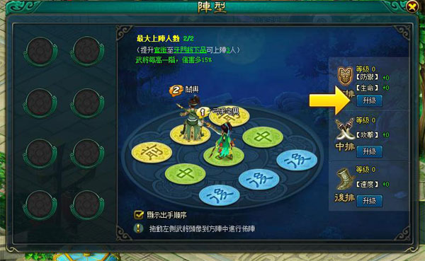 佈陣將會影響上陣武將的出手順序