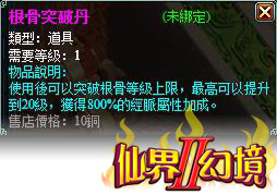想要進行根骨突破相當簡單,只要透過根骨突破丹即可進行根骨等級上限的突破,根骨一旦突破後等級上限將會改變,玩家們可以透過不斷的將根骨往上提升讓自己的戰鬥力不斷加成爆表!
