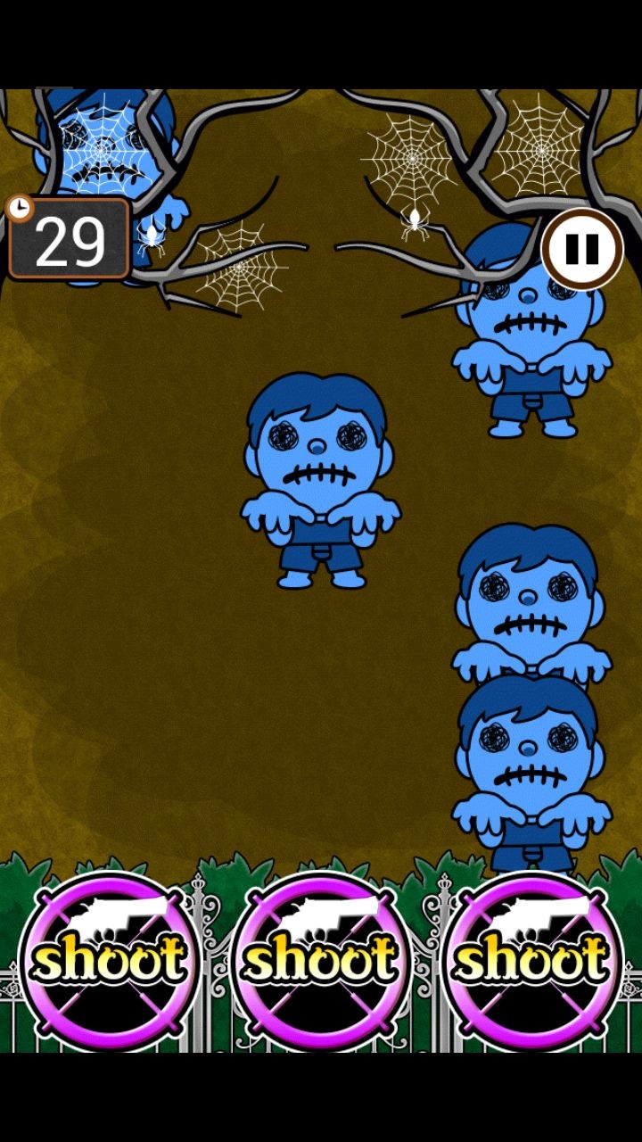 進入遊戲後,畫面上就會跑出一張圖說明遊戲的玩法,實在是簡單到爆-只要按下畫面上的手槍圖示,就可以送最靠近畫面下端的殭屍上路,玩起來感覺就像是「沒有音樂的節奏 DJ」。在三十秒的時間內,只要擊殺越多殭屍,玩家在排行榜上的排名就會排的越前面。而玩家要是不小「溜手」按錯,就會被生吞活…開玩笑的,按錯的話,那殭屍只是會跳一下,害你損失一點時間,什麼事也不會發生。