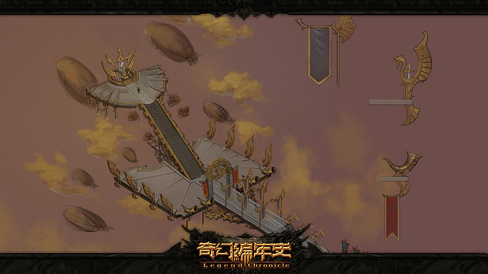 研發團隊:《奇幻編年史 Online》的場景負責人便是之前提到的劉新宇,他在美術創造力方面具有很強的能力。作為一款大世界冒險遊戲,不可能每一個地區都有原畫繪製好的設計圖。這就需要場景製作者擁有二次創作的能力,基於原畫師對於該地區基本地貌的樣式,進行整個地圖的發散構思。同時,場景負責人必須懂得配合企劃的關卡設計,將簡單的通路圖、機關圖示,變化成 3D 場景。