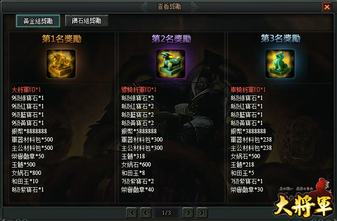 本次比賽會有兩個賽區,玩家根據自己的級別來報名相應的賽區。而每個賽區的擂主都將獲得一份神秘的禮物,據說是獨一無二的神秘裝備!還有數不勝數的奇珍異寶,趕快參加吧!